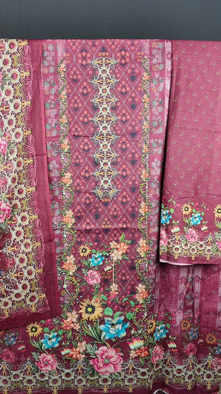 - পারফেক্ট কম্বিনেশন: সেলোয়ার, ওড়না এবং জামার ডিজাইনগুলো একে অপরের সাথে পুরোপুরি মানানসই, যা আপনার পোশাককে করে তুলবে সম্পূর্ণ ও সুসংগঠিত।